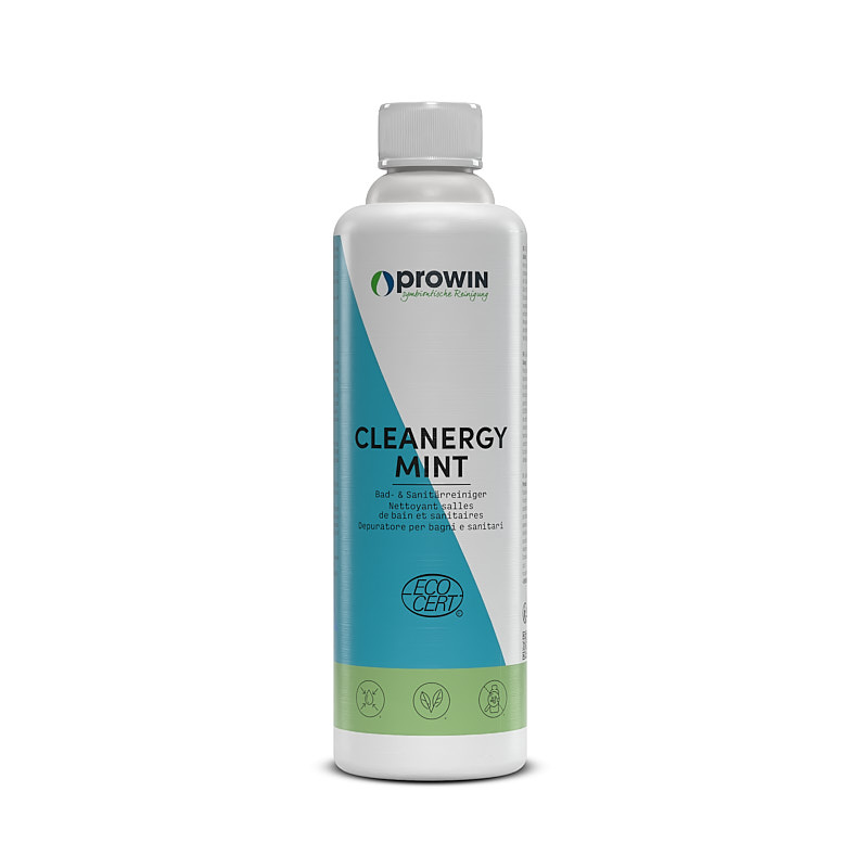 CLEANERGY MINT, per una pulizia potente di tutte le superfici resistenti all'acqua, lavabili e resistenti agli acidi del bagno e dei sanitari. Il detergente per il bagno con acido citrico naturale e acido lattico scioglie in modo efficace e senza fatica sporco, calcare e residui di sapone e allo stesso tempo protegge rubinetterie e materiale. I gliceridi degli acidi grassi vegetali si prendono cura delle superfici trattate e l'olio essenziale di menta piperita lascia un profumo piacevolmente fresco.