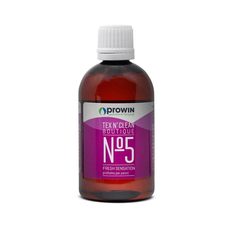 TEX N'CLEAN BOUTIQUE No. 5 FRESH SENSATION è ideale per dare un bel profumo ai vostri panni in combinazione con i detersivi proWIN. Fa parte del kit di lavaggio proWIN ed è il prodotto ideale per tutti che vogliono donare un profumo particolare ai propri panni.